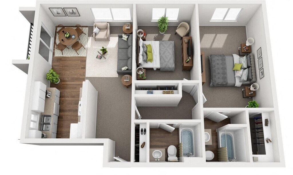 2 Dormitorios, 2 Baños, 996-1074 pies²Disponible AhoraGalería del Modelo