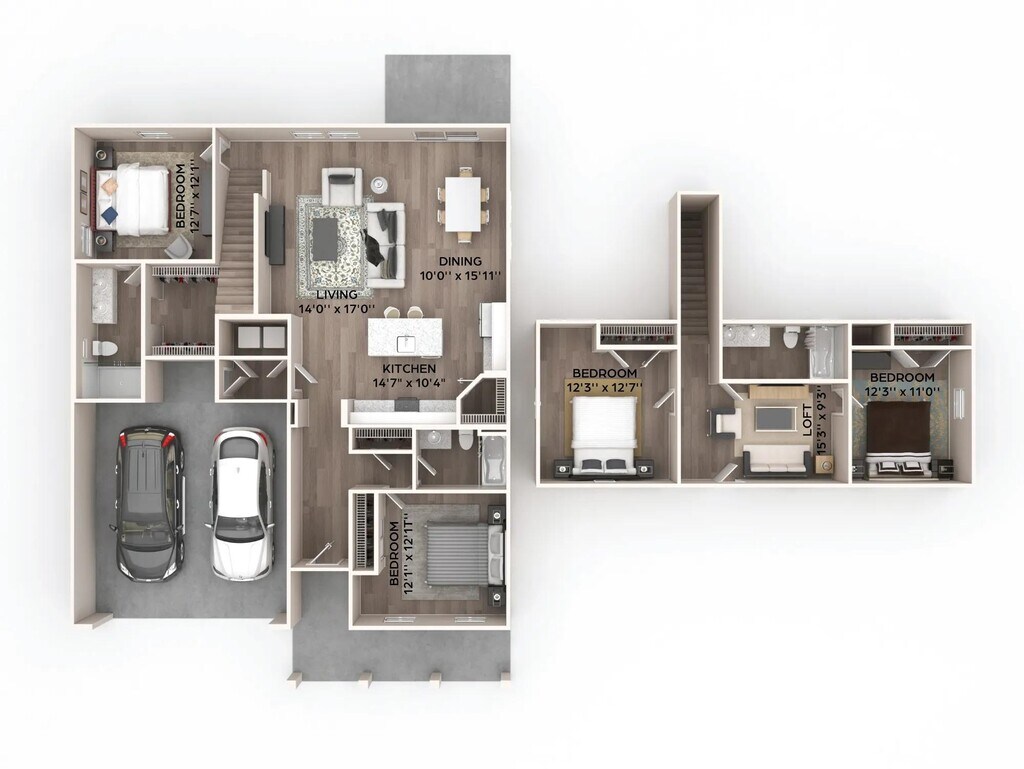 3 Dormitorios, 2.5 Baños, 1601 pies²Disponible January 12, 2026Galería del Modelo