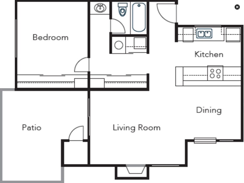 Modelo de apartamento: ELlame para Precios1 Dormitorio, 1 Baño, 692 sq ftNo Disponible![]()