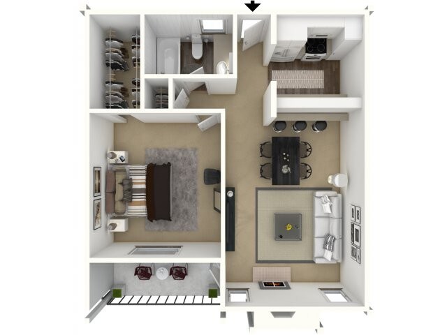 Modelo de apartamento: Aurora II1 Dormitorio, 1 Baño, 700 sq ftDisponible December 17, 2025![]()