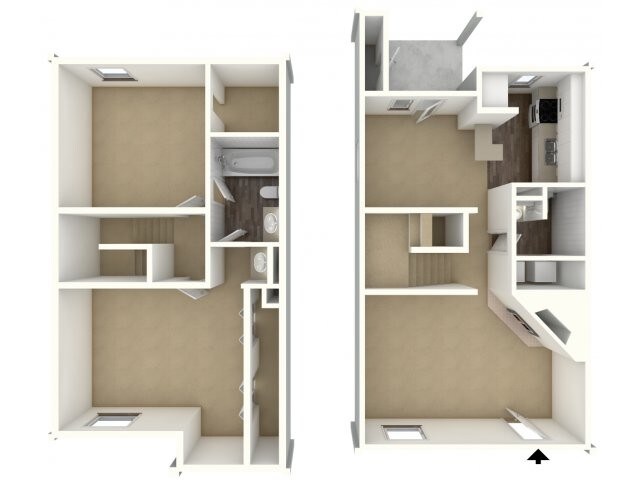 Sunrise II - Plano 3 Unidad de apartamento: 11-183Modelo de apartamento: Sunrise II2 Dormitorios, 2.5 Baños, 1060 sq ftDisponible December 8, 20253 Dormitorios