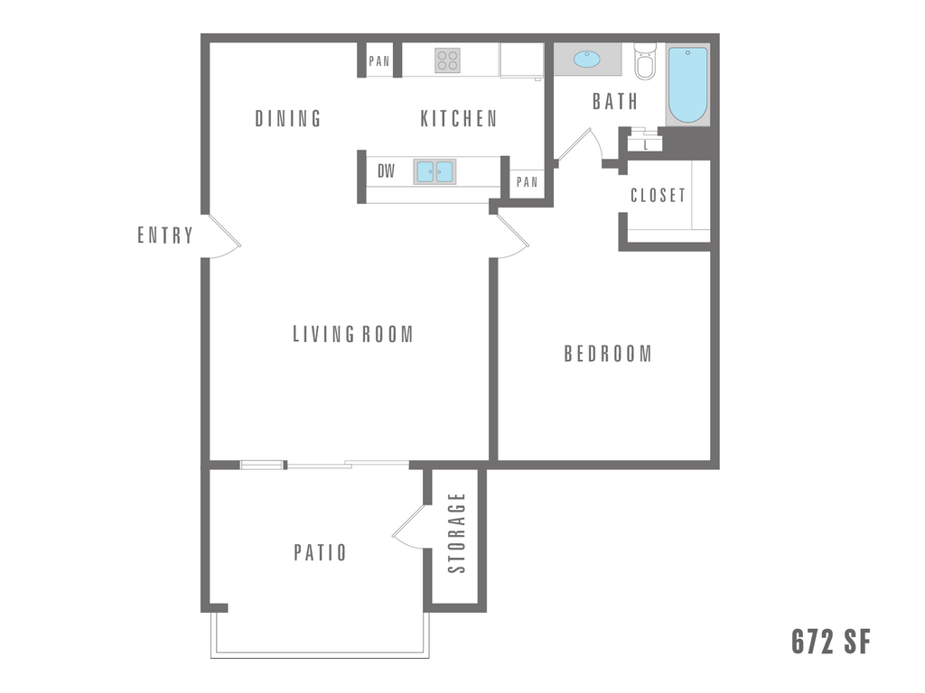 1 Dormitorio, 1 Baño, 672-859 pies²Disponible AhoraGalería del Modelo