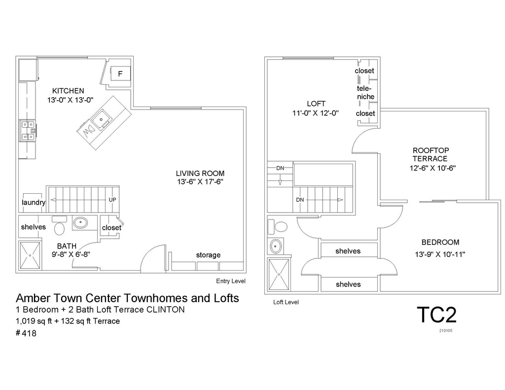 2 Bedroom + Den Townhome - Plano 2 Loft Townhouse Terrace