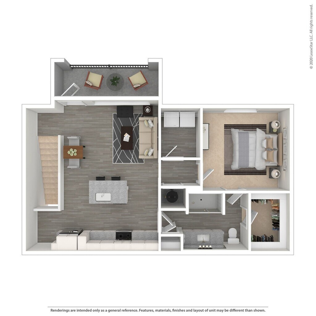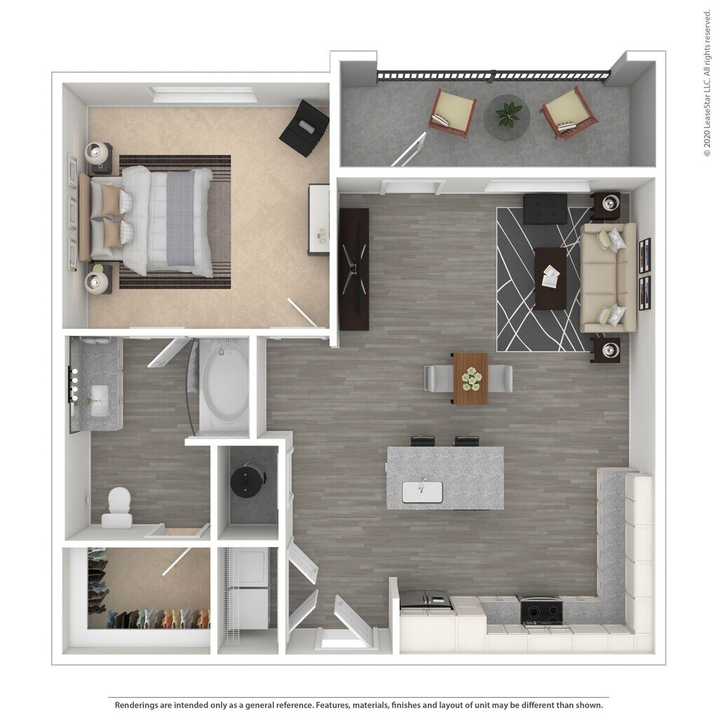 1 Dormitorio, 1 Baño, 747 pies²Disponible AhoraGalería del Modelo