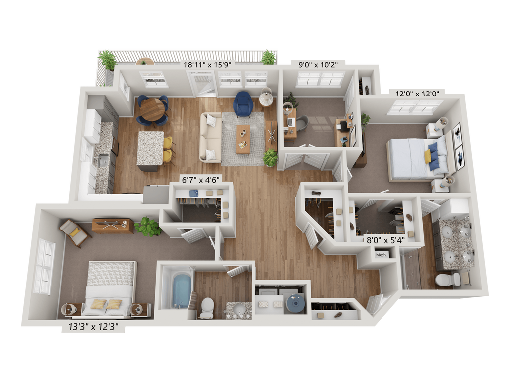 1 Dormitorio, 1 Baño, 893 pies²Disponible AhoraGalería del Modelo