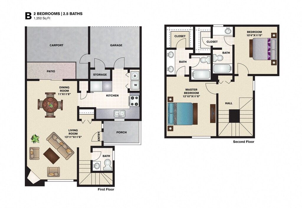B - Plano 2 Unidad de apartamento: 098Modelo de apartamento: B2 Dormitorios, 2.5 Baños, 1252 sq ftDisponible AhoraUnidad de apartamento: 103Modelo de apartamento: B2 Dormitorios, 2.5 Baños, 1252 sq ftDisponible AhoraPlano: A