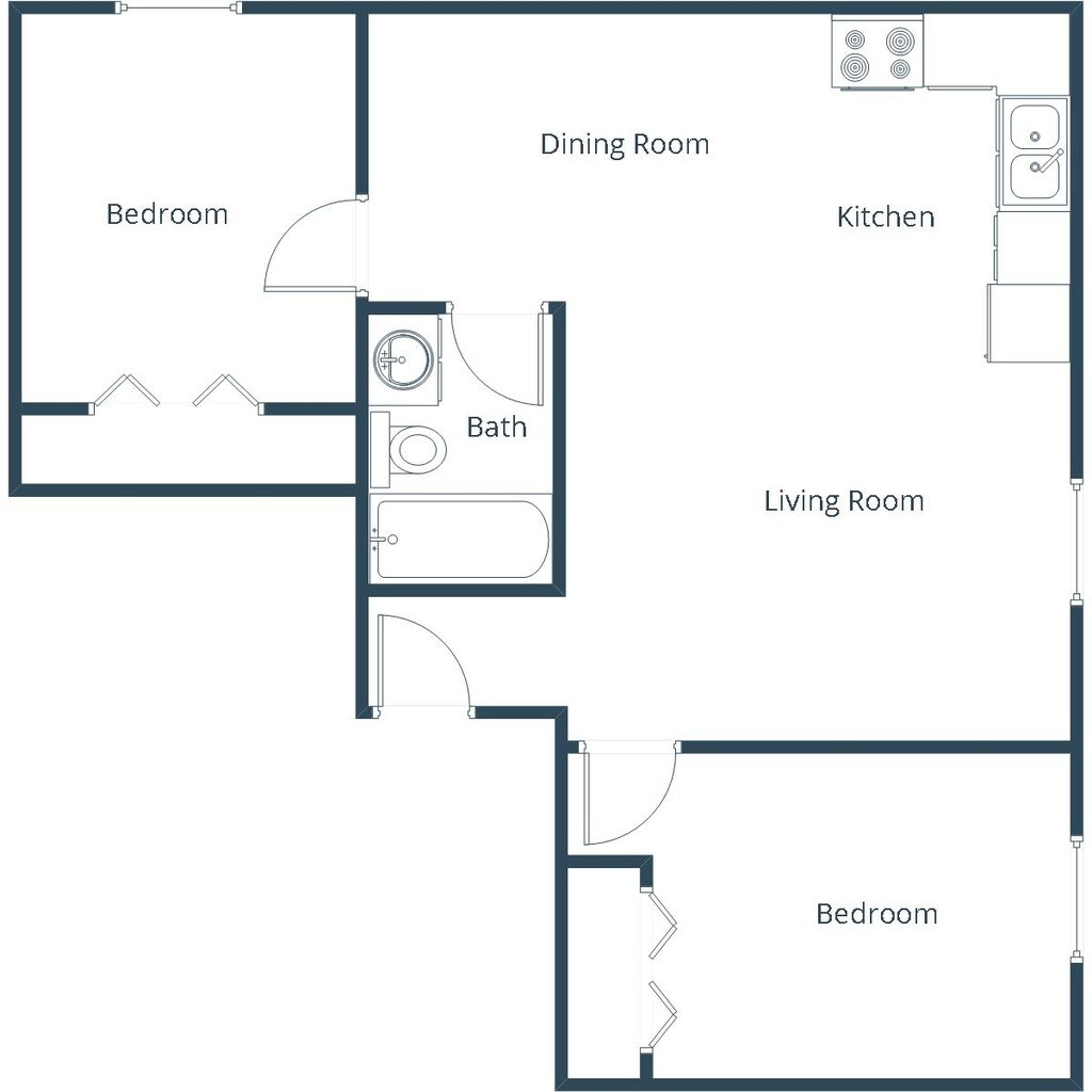 2 Dormitorios, 1 Baño, 900 pies²Galería del Modelo