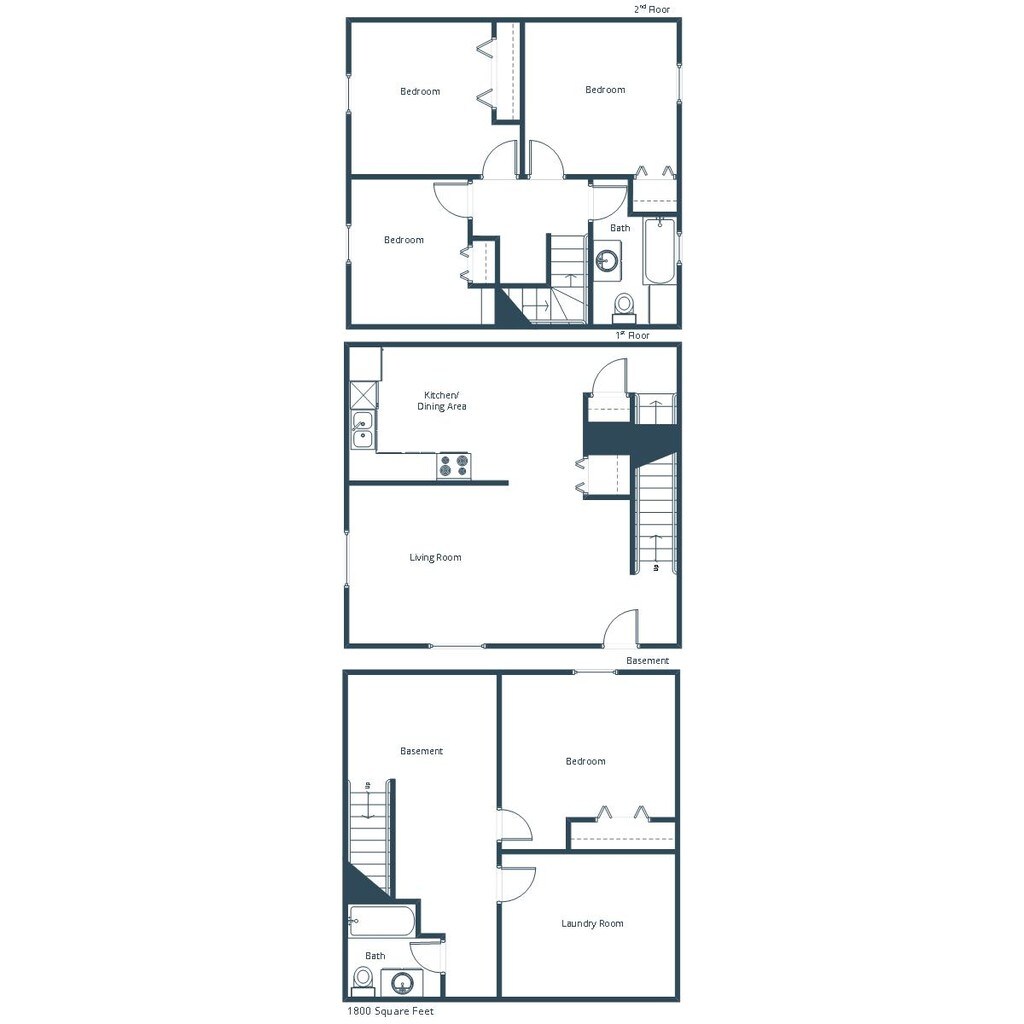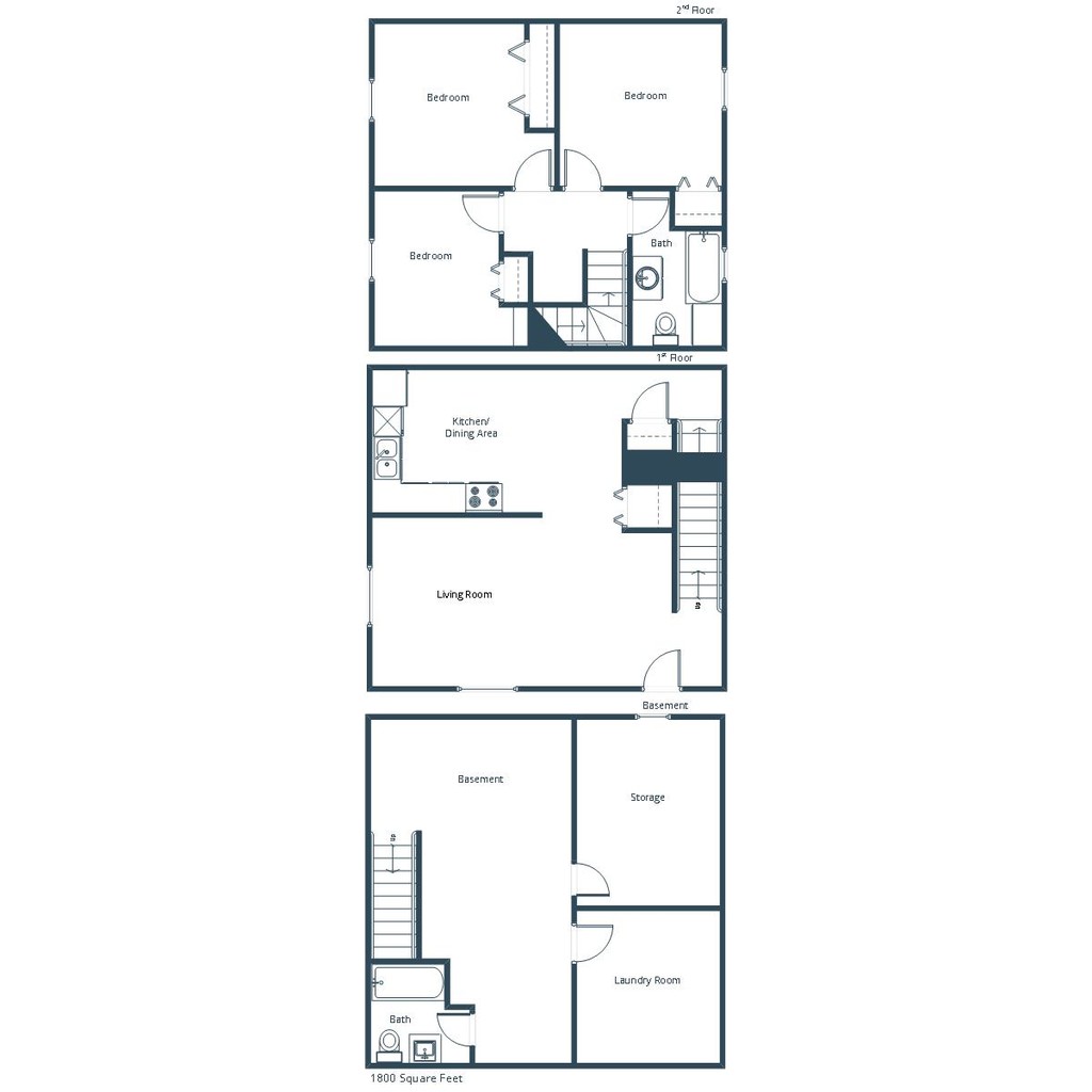 2 Dormitorios, 1 Baño, 800 pies²Galería del Modelo