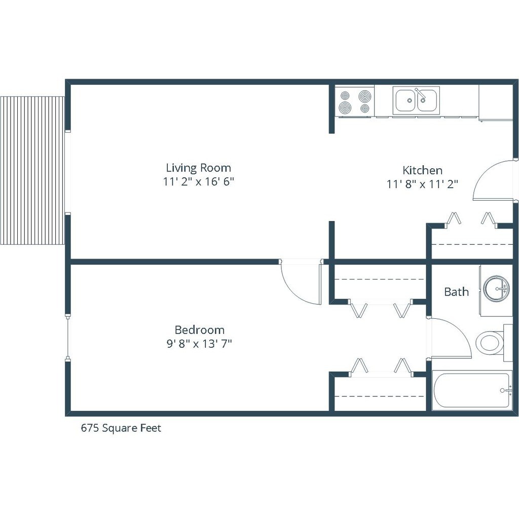1 Dormitorio, 1 Baño, 675 pies²Galería del Modelo