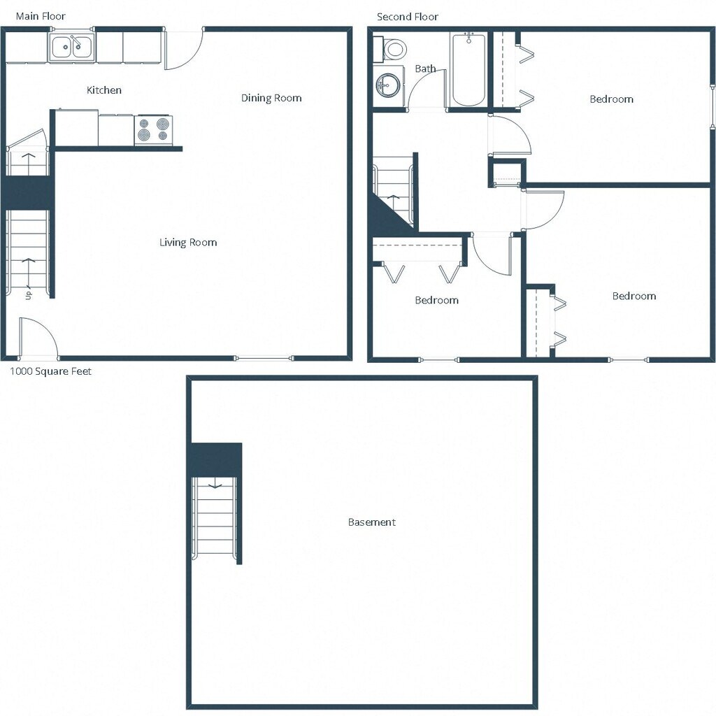 Stanford Court - Two Bedroom - Plan 21A - Plano 1 Oakview Townhomes - Plan 21A