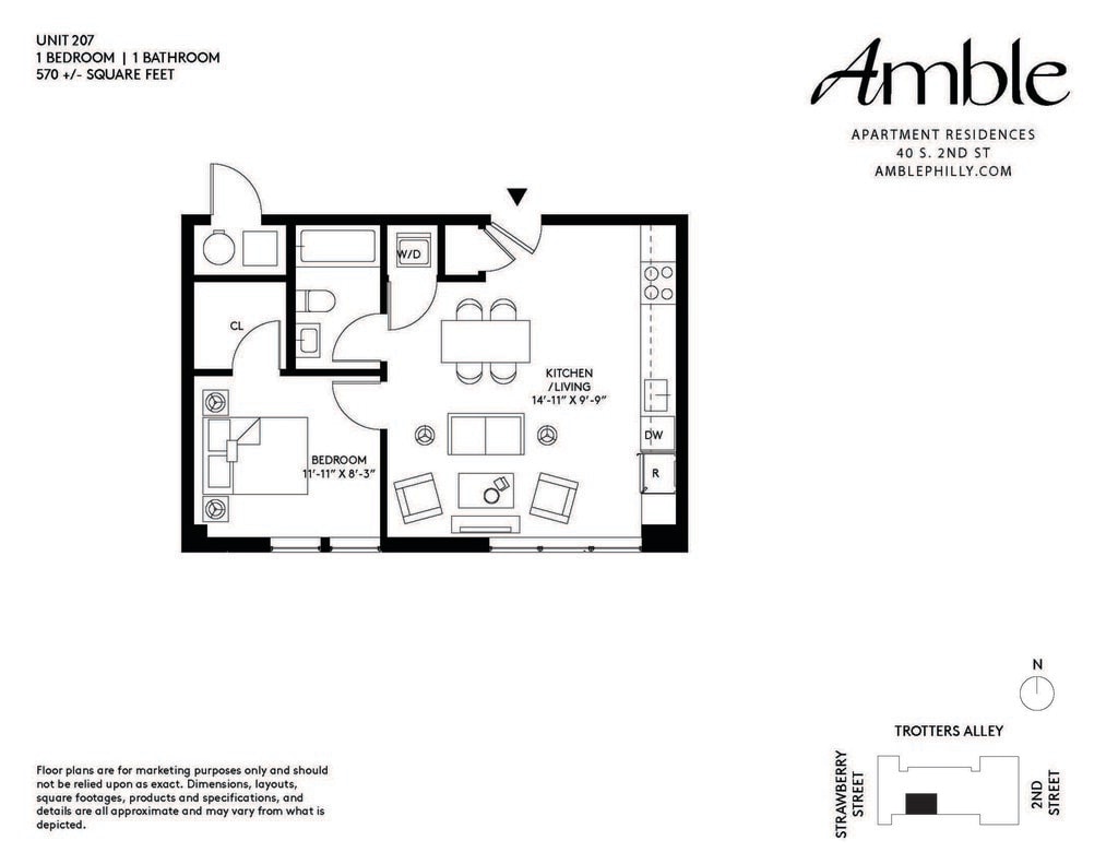 Amble se encuentra en el Barrio Olde City y el código postal 19106 de Philadelphia, PA. Esta comunidad está gestionada profesionalmente por Posel Management Company