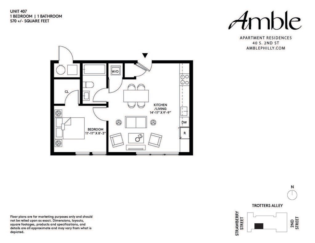 Amble - Nuevos apartamentos de lujo en el corazón de Old City. No hay otro edificio como Amble. No hay otro vecindario como Old City. Amble marca todas las casillas para disfrutar de la vida en la ciudad en su máxima expresión. Apartamentos y comodidades cuidadosamente diseñados con la mejor hospitalidad. Amble es una nueva colección de 61 modernos apartamentos que admiten mascotas, inspirados en el encanto histórico de Old City. Ubicado en 2nd Street y Trotters Alley con comodidades modernas y diseños de interior meticulosamente diseñados, Amble es una icónica ubicación en el corazón del histórico vecindario de la ciudad que ofrece una asequible oportunidad de vivir en un complejo de vanguardia en la mejor parte del casco antiguo de la ciudad. La ubicación de este nuevo edificio de estilo boutique ofrece un cómodo estilo de vida de la ciudad con fácil acceso a la I-95, 676, la línea The Market Frankford y las rutas de autobuses Septa. El histórico tejido del vecindario se refleja en los detalles artesanales de la fachada, junto con comodidades de lujo para respaldar el moderno estilo de vida del trabajo desde casa teniendo en cuenta un equilibrio saludable de juego y relajación. Amble lo tiene todo: un hermoso SALÓN DE TRABAJO COMPARTIDO y GIMNASIO abierto las 24 horas, los 7 días de la semana, exclusivos para residentes, una amplia TERRAZA EN LA AZOTEA con asientos cómodos, vistas de 360 grados del puente Ben Franklin, el horizonte del centro de la ciudad y el río Delaware, una entrada remota sin llave de última generación, una sala de correo dedicada para tus paquetes y una sala de bicicletas. Los acabados de los interiores han sido decorados con el máximo cuidado. Accesorios personalizados y materiales de lujo atemporales se han utilizado en todo el lugar. Gabinetes de cocina italianos, electrodomésticos de acero inoxidable, impresionantes encimeras de cuarzo, baños estilo spa con bañeras profundas y ventanas de gran tamaño que brindan una gran cantidad de luz natural y lavadoras/secadoras en cada apartamento. Amble es el lugar perfecto para llamar hogar. Fechas de mudanza flexibles. Variedad de diferentes planos para elegir. Visita nuestro sitio web para obtener más información y programar un recorrido.