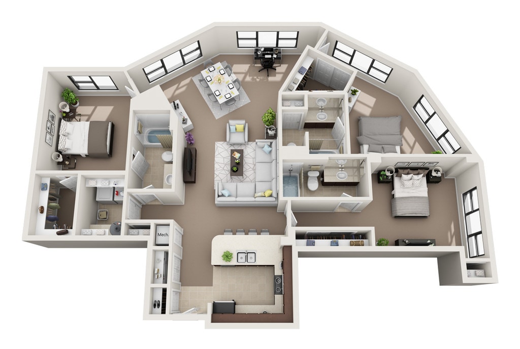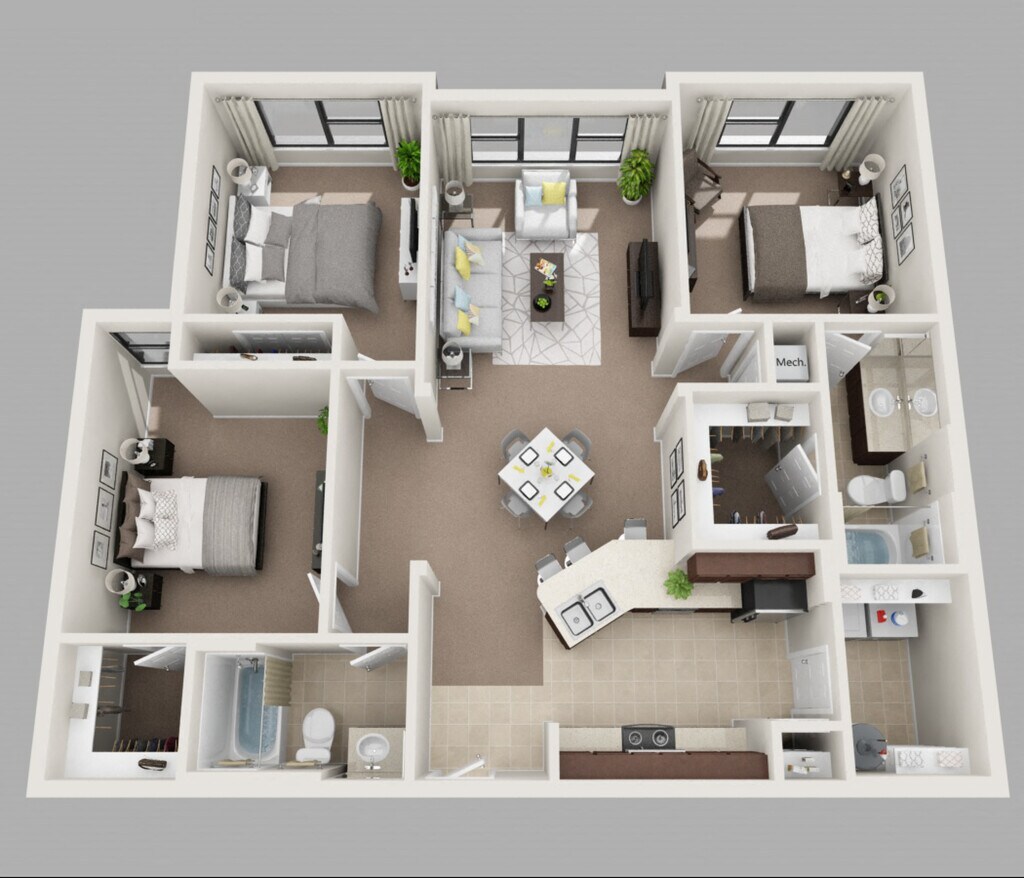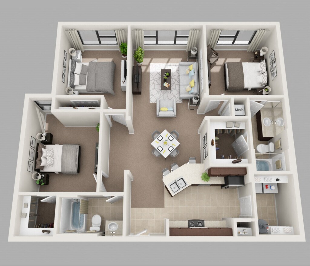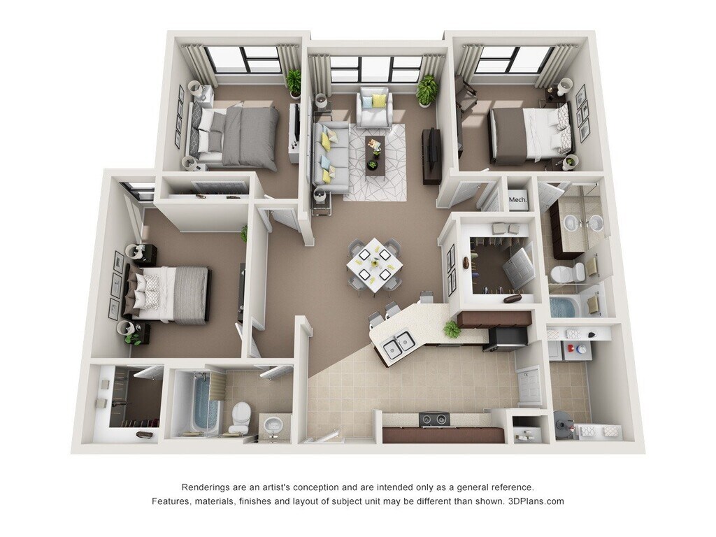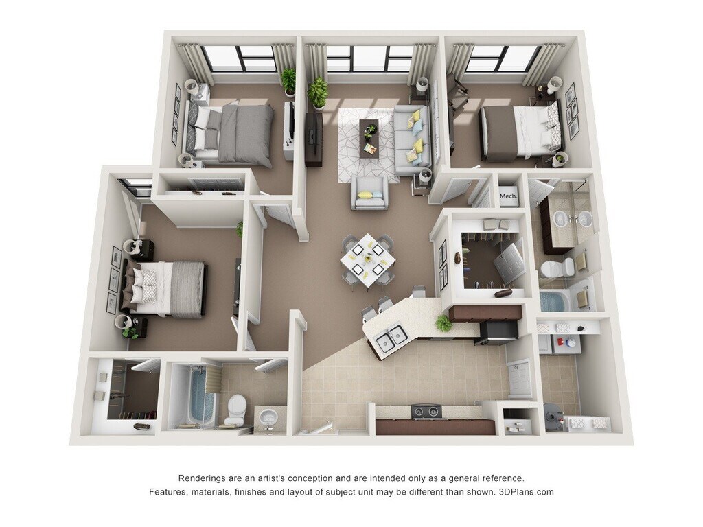 Two Bedroom Two Bathroom - Plano 1 3 Dormitorios