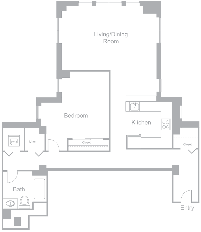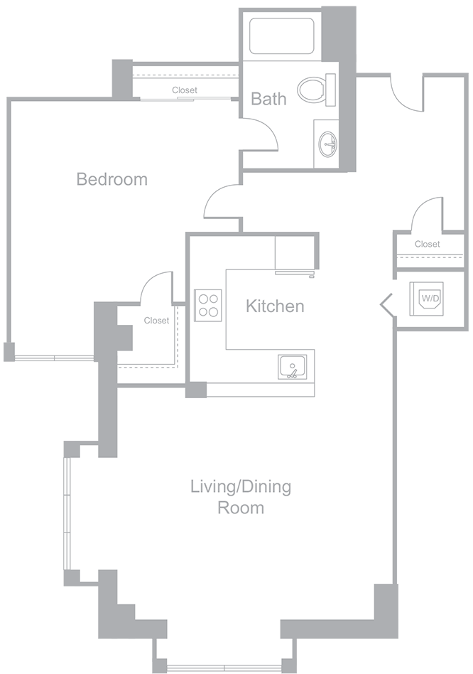 1 Dormitorio, 1 Baño, 791 pies²Precio Mensual TotalDisponible AhoraGalería del Modelo