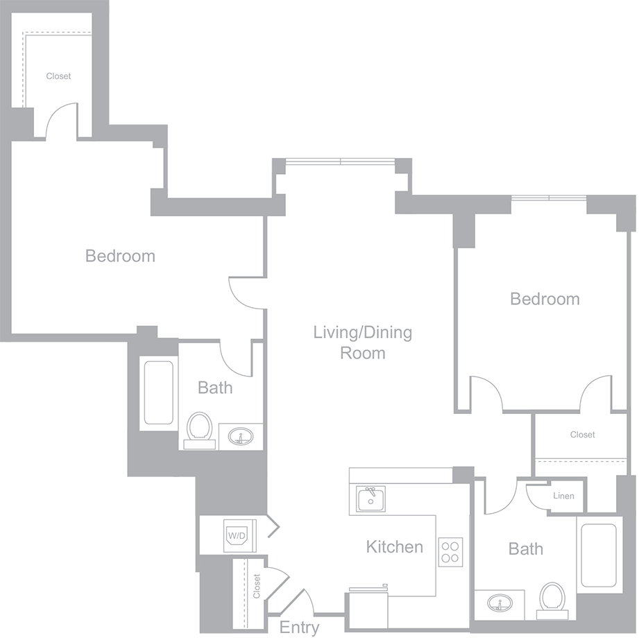 Modelo de apartamento: A2Llame para Precios1 Dormitorio, 1 Baño, 777 sq ftNo Disponible![]()