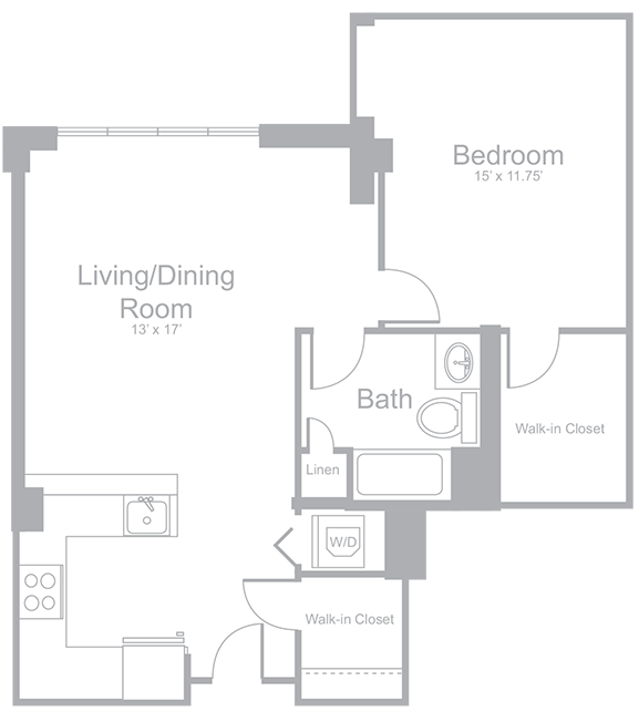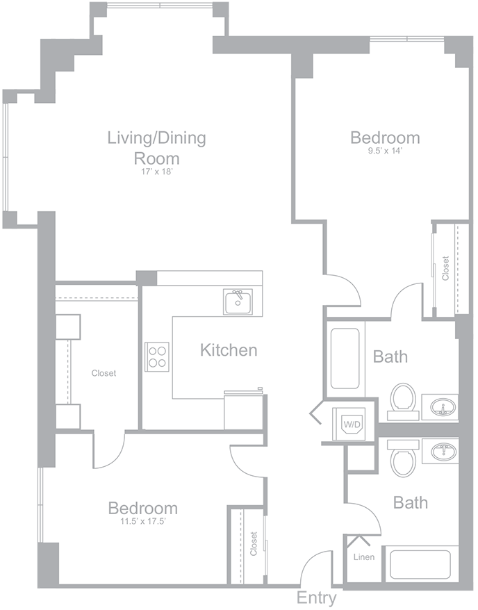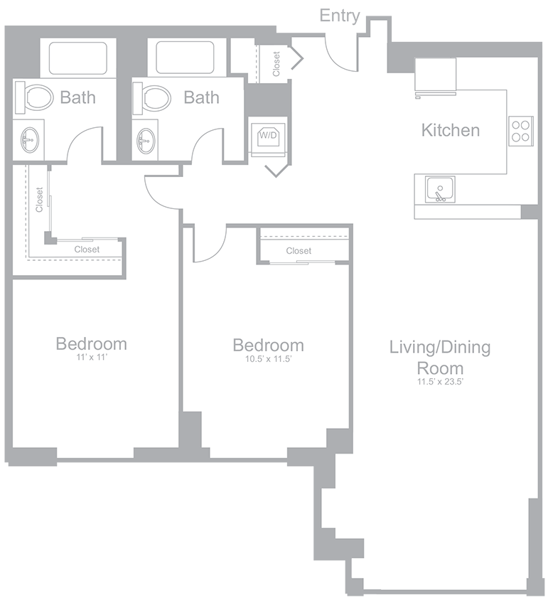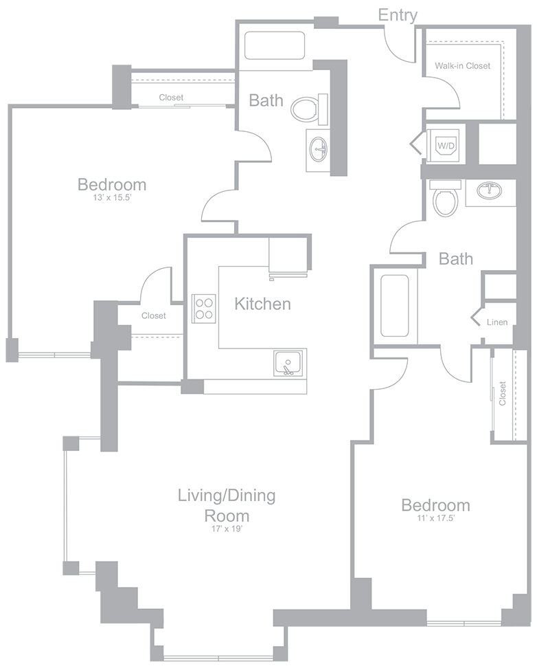 1 Dormitorio, 1 Baño, 974 pies²El más grandeEsta opción tiene las unidades más grandes para este modeloGalería del Modelo