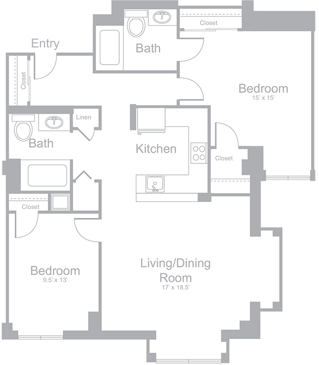 Modelo de apartamento: A3Llame para Precios1 Dormitorio, 1 Baño, 782 sq ftNo Disponible![]()