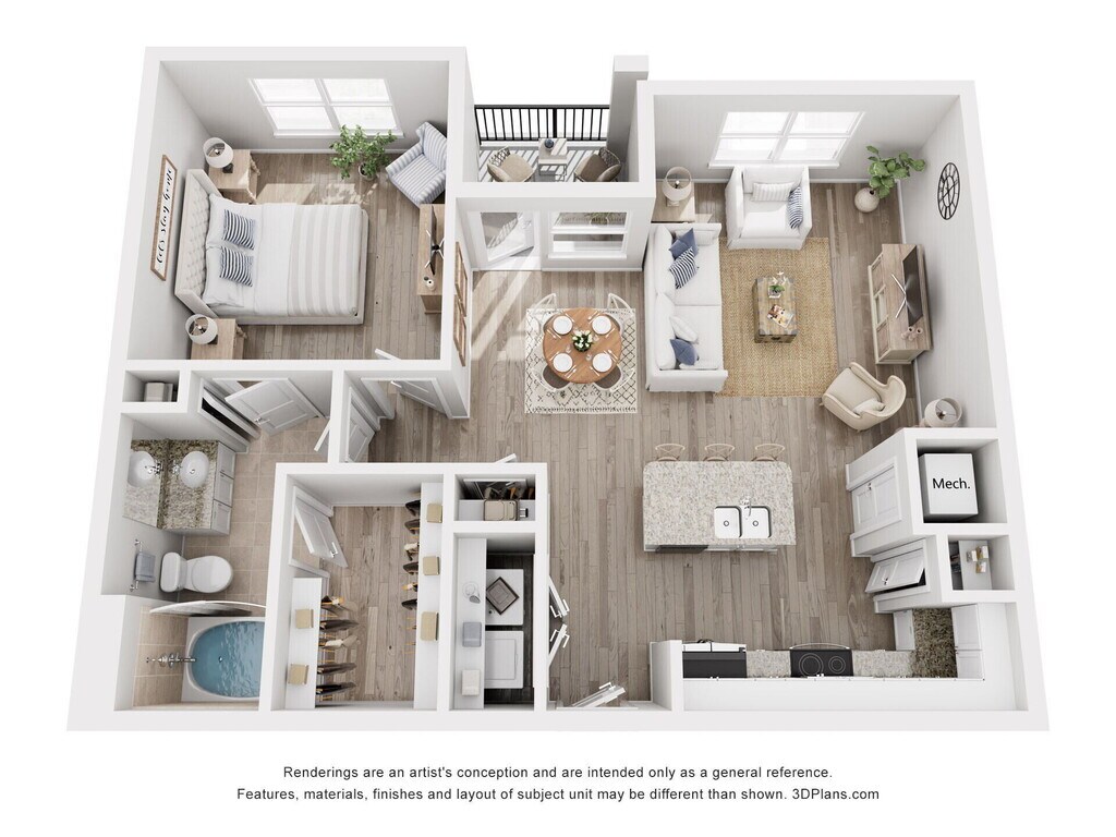 Modelo de apartamento: A1Desde $1,7141 Dormitorio, 1 Baño, 620 sq ftDisponible December 5, 2025![]()