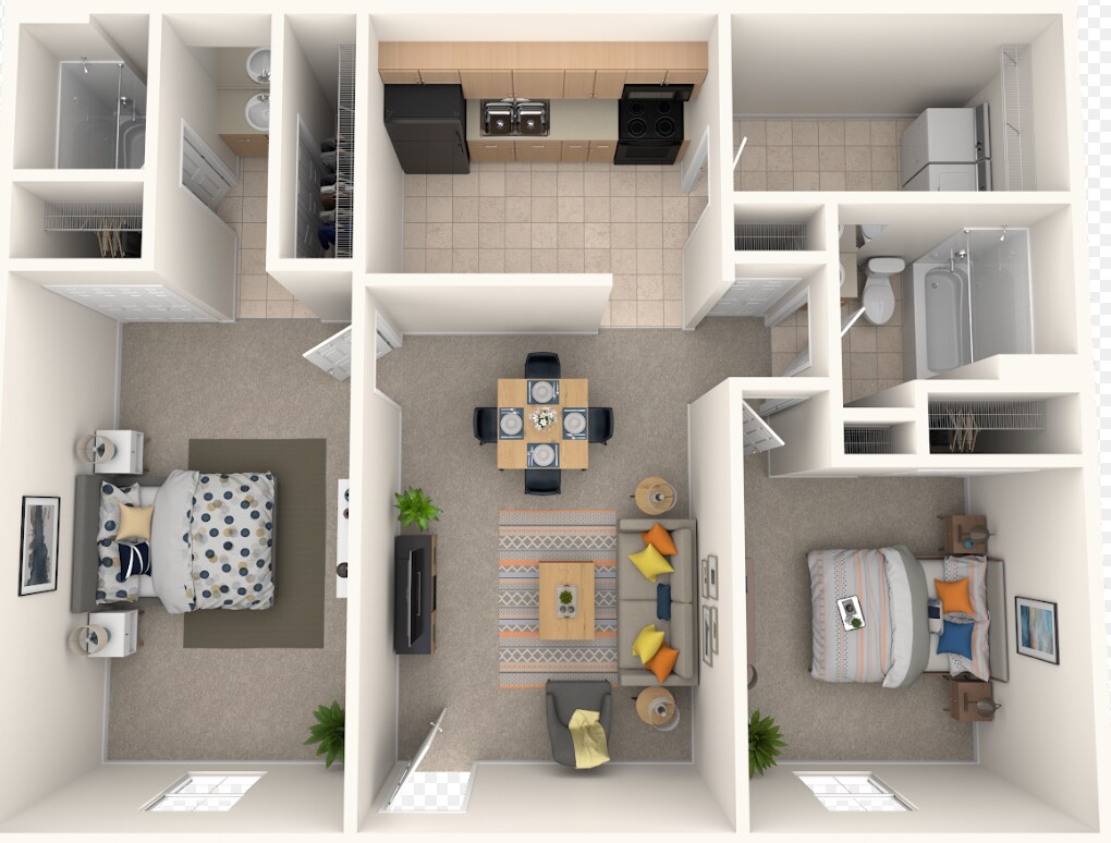 1 Dormitorio, 1 Baño, 576 pies²Disponible AhoraGalería del Modelo