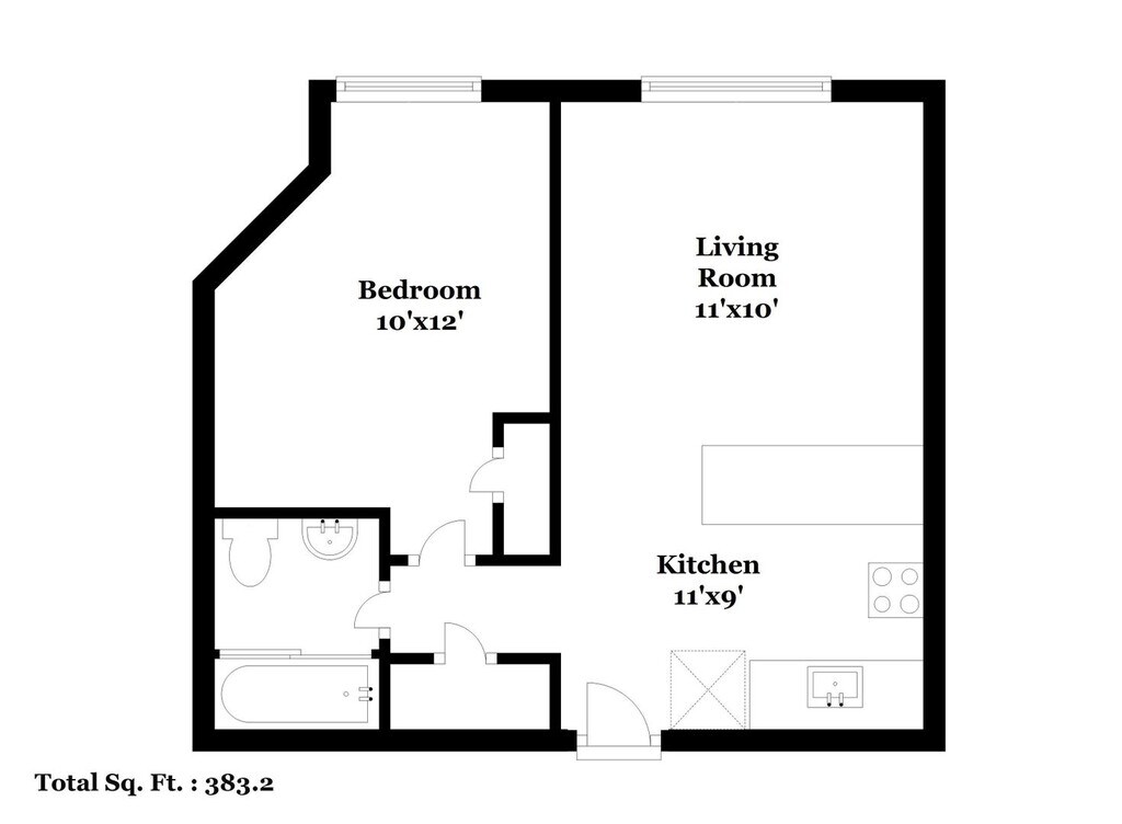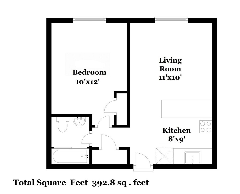 1 Dormitorio, 1 Baño, 383-396 pies²Disponible August 19, 2026Galería del Modelo