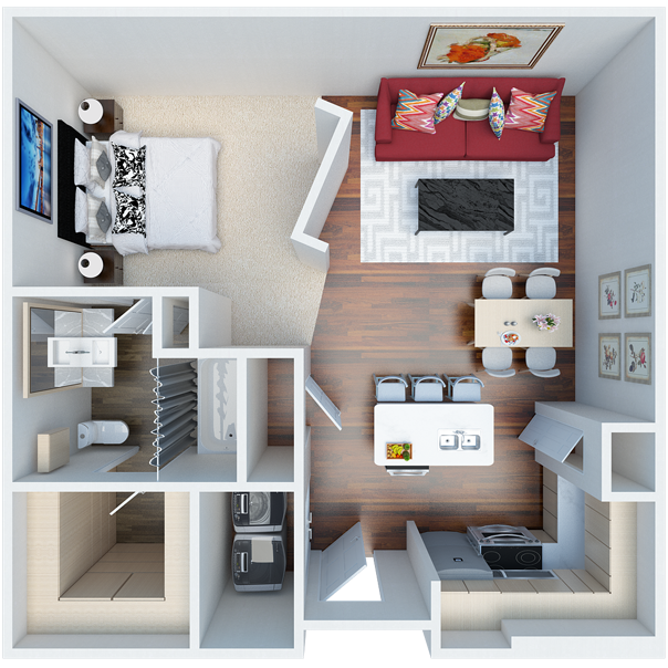 1 Dormitorio, 1 Baño, 835 pies²Disponible AhoraEl más grandeEsta opción tiene las unidades más grandes para este modeloGalería del Modelo