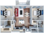 Modelo de apartamento: 1x1Llame para Precios1 Dormitorio, 1 Baño, 750 sq ftNo Disponible1x1 - Plano 1 2 Dormitorios