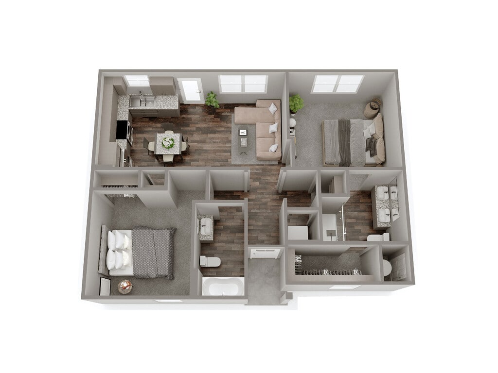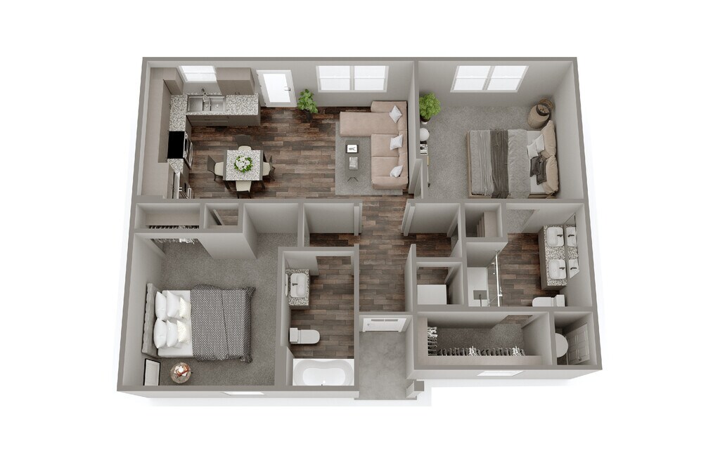2 Dormitorios, 2 Baños, 820 pies²Disponible AhoraGalería del Modelo