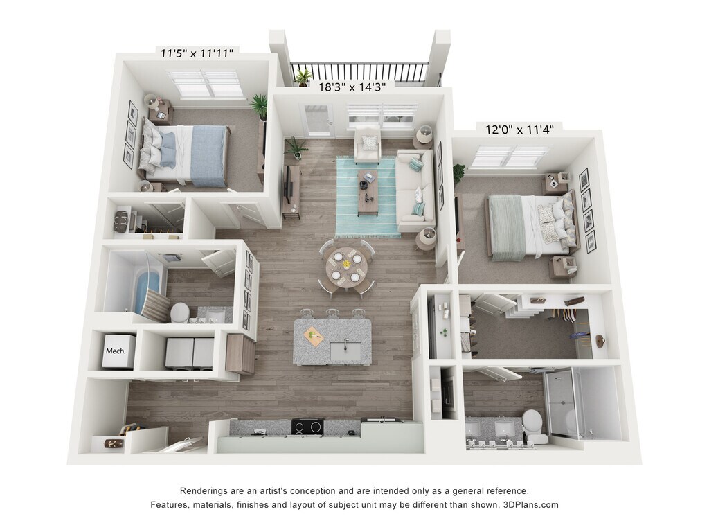 Modelo de apartamento: B2Llame para Precios2 Dormitorios, 2 Baños, 1022 sq ftNo Disponible![]()