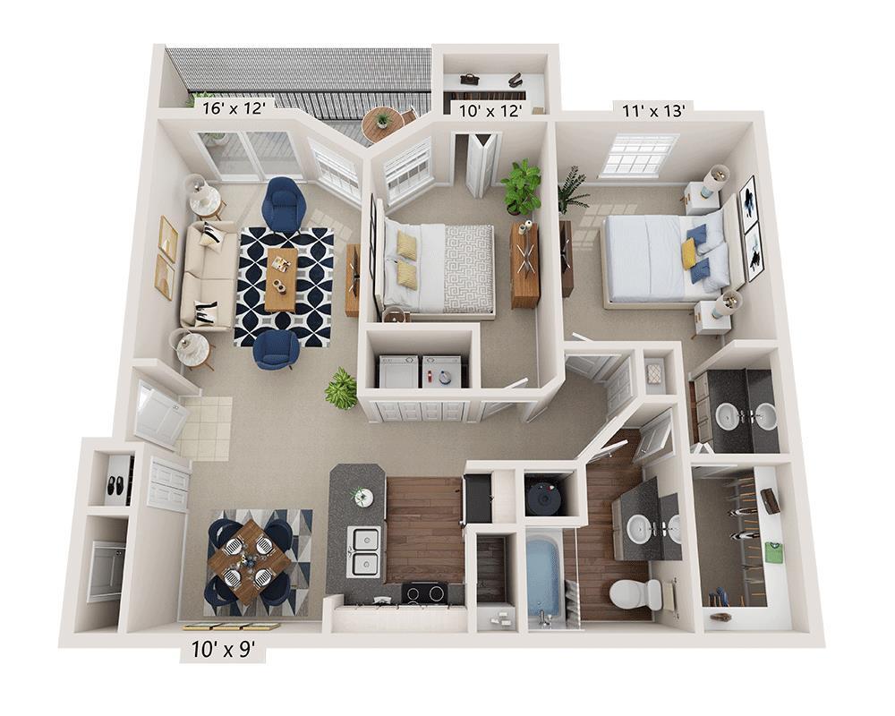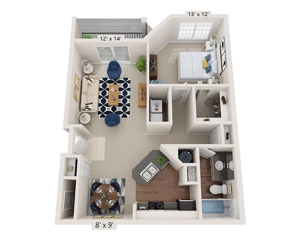 Modelo de apartamento: One Bedroom A1Desde $1,2601 Dormitorio, 1 Baño, 842 sq ftDisponible Ahora![]()