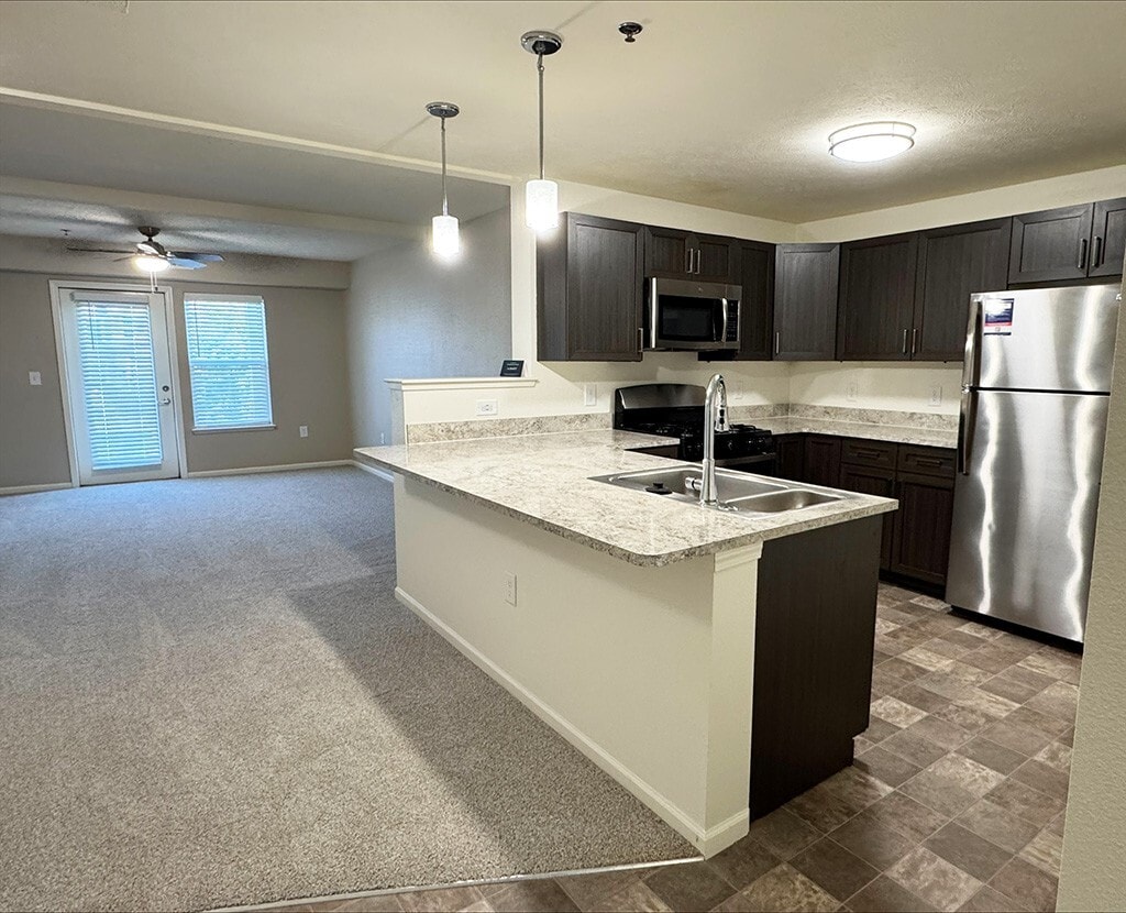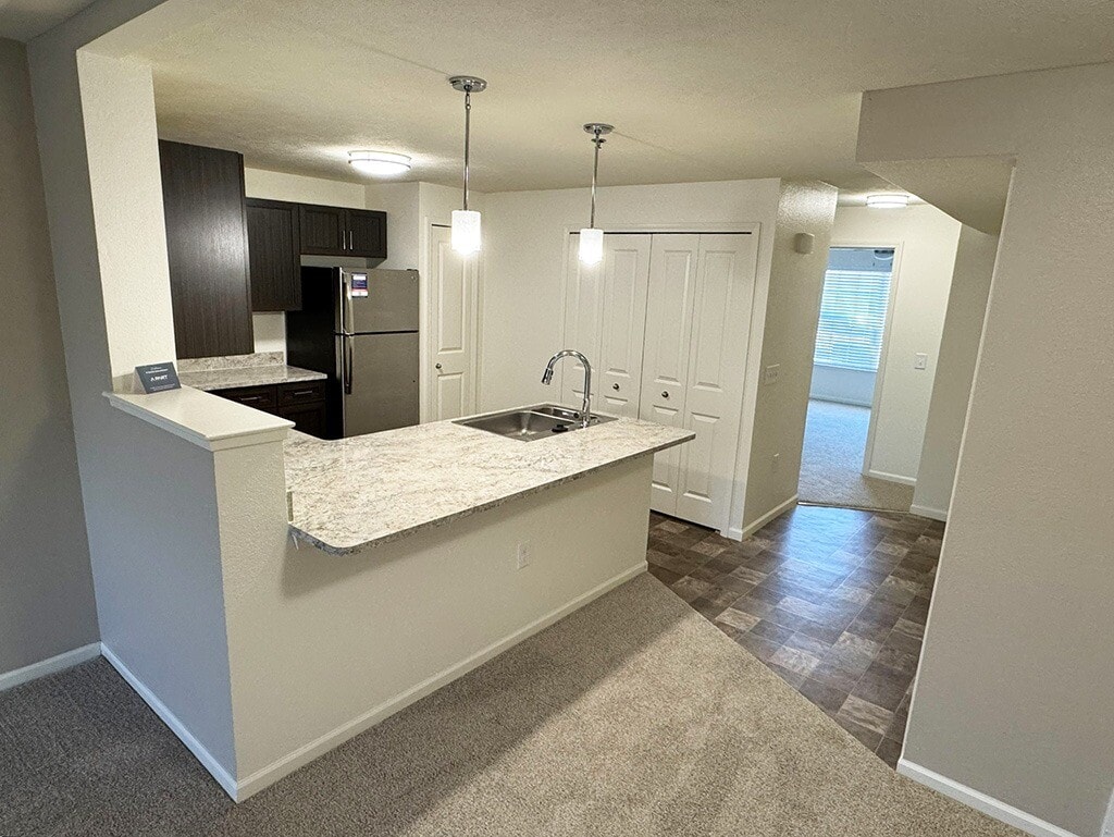 ¡Haz un recorrido virtual ahora! Andover Pointe te desafía a reconsiderar la vida suburbana. ¡Escápate del ajetreo y el bullicio de la ciudad, pero al mismo tiempo encuéntrate cerca de todo! Vive cómodamente con todas las comodidades modernas al alcance de tu mano, desde cocinas de estilo europeo hasta lavadoras y secadoras. Rodéate de atractivas comodidades diseñadas para elevar tu estilo de vida. Nuestro nuevo complejo de amplios apartamentos en alquiler en La Vista, NE, ofrece precisamente eso y más. Tu experiencia incomparable aquí comienza tan pronto como pones un pie en nuestros terrenos. El amplio estacionamiento fuera de la vía pública y los garajes con acceso remoto cubren tus necesidades más básicas, lo que te permite centrar tu atención en lo que realmente importa. Los apartamentos, disponibles en planos de planta de una y dos habitaciones, te impresionarán con su sensación de amplitud y luminosidad, espacios amplios, baños grandes y balcones/patios relajantes. La espectacular piscina, la casa club y el gimnasio abierto las 24 horas con pesas libres cuentan con acceso Wi-Fi, lo que te ayuda a compartir cualquier momento que valga la pena recordar en un instante. Para una mayor comodidad, algunos edificios de apartamentos admiten mascotas y nuestro personal profesional está disponible las 24 horas, los 7 días de la semana para ayudarte con cualquier solicitud de mantenimiento de emergencia. Nuestra conveniente ubicación en La Vista, junto a la I-80, lo acerca a excelentes tiendas, restaurantes y lugares de entretenimiento. El centro comercial Oak View está a minutos de distancia, mientras que CHI Health, la Universidad de Nebraska Omaha y las empresas Fortune 500 y Fortune 1000 con sede en nuestra ciudad se encuentran a un cómodo viaje. Llámanos para obtener más detalles sobre el alquiler de uno de nuestros amplios apartamentos en alquiler en La Vista. ¡Nos encantaría darte la bienvenida a casa!