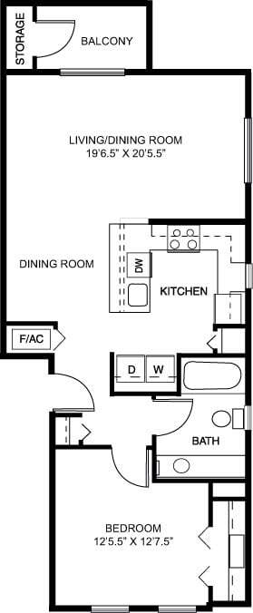 Modelo de apartamento: One Bedroom One BathDesde $1,1521 Dormitorio, 1 Baño, 738-798 sq ftDisponible AhoraPlanosFotos![]()