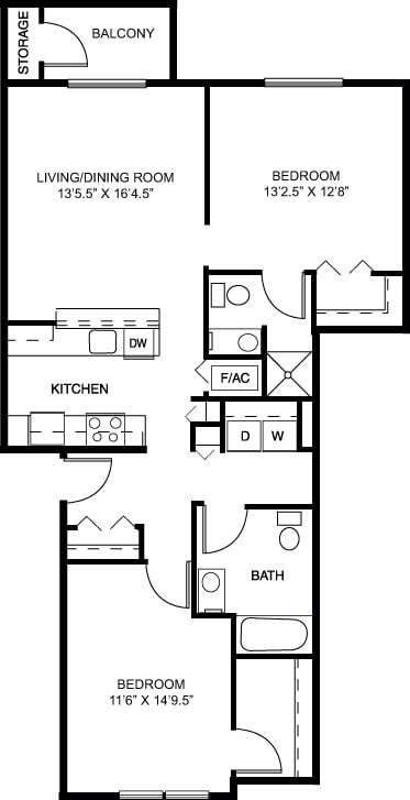 1 Dormitorio, 1 Baño, 828-842 pies²Disponible AhoraGalería del Modelo