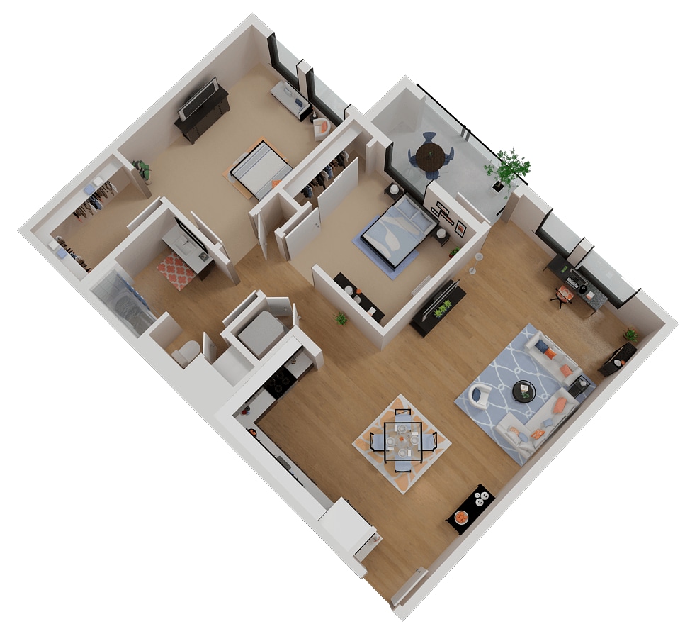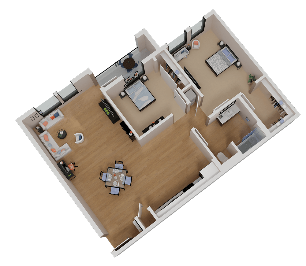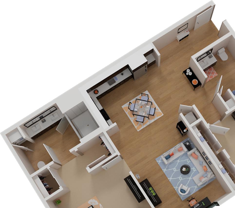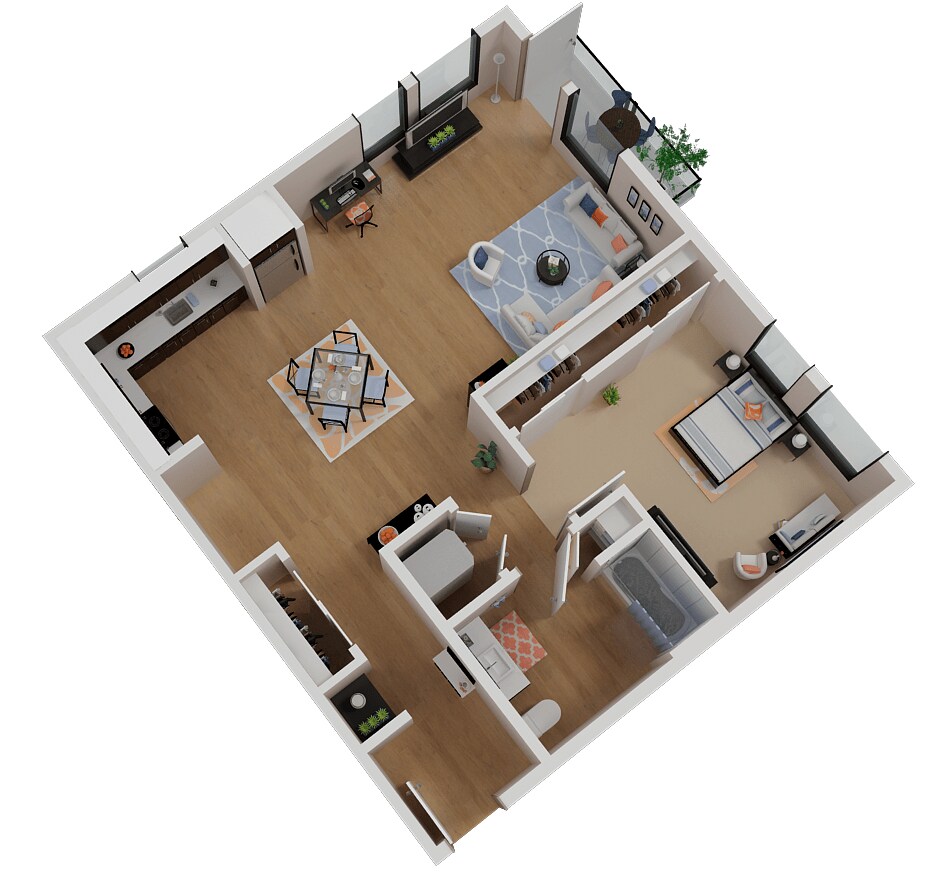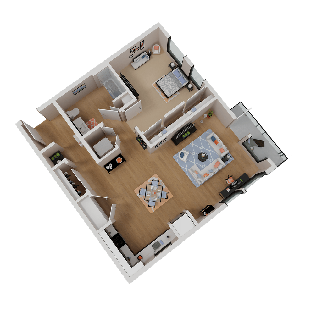 1 Dormitorio, 1 Baño, 806 pies²Disponible AhoraGalería del Modelo