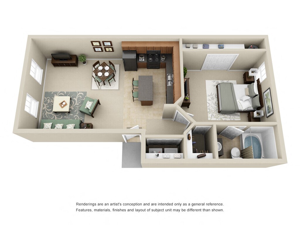 1 Dormitorio, 1 Baño, 643 pies²Disponible AhoraGalería del Modelo