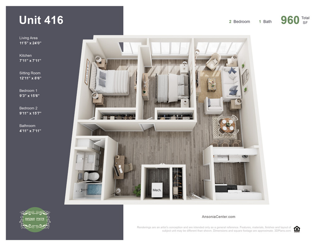 Ansonia Center ofrece apartamentos de 1 Dormitorio y 900 pies cuadrados. Aquí está el precio actual y la disponibilidad: