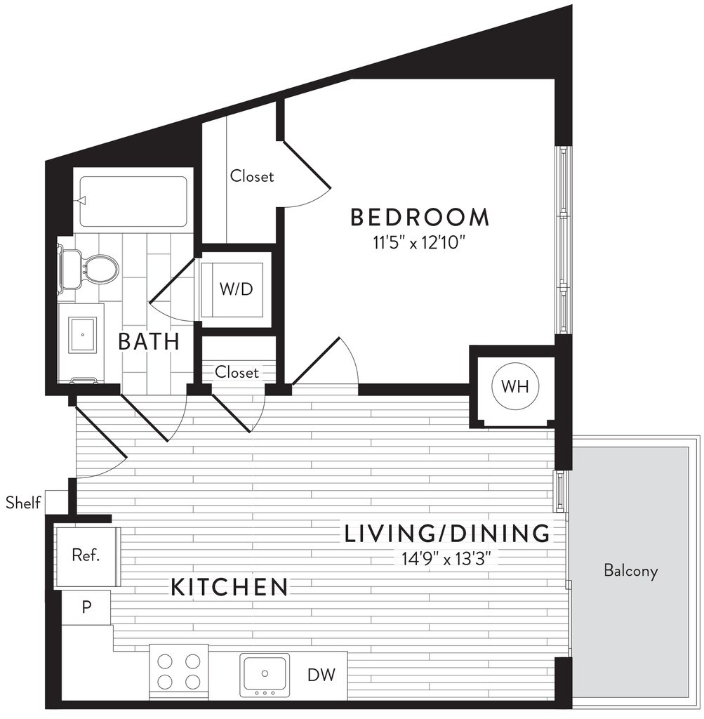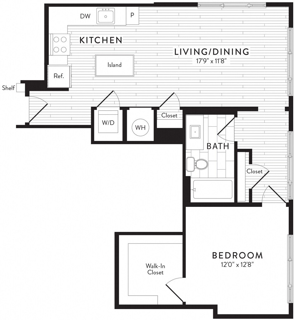 Modelo de apartamento: A2 S3 - StudioDesde $1,645Estudio, 1 Baño, 502 sq ftDisponible Ahora![]()