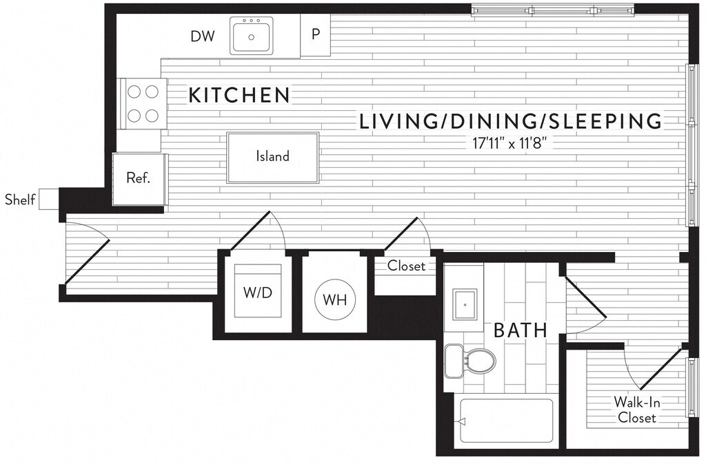 Modelo de apartamento: S3 - StudioDesde $1,835Estudio, 1 Baño, 576 sq ftDisponible December 5, 2025![]()
