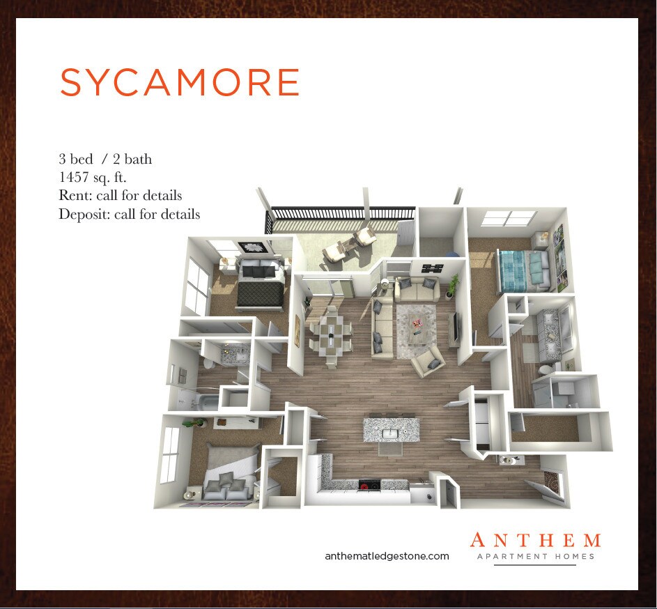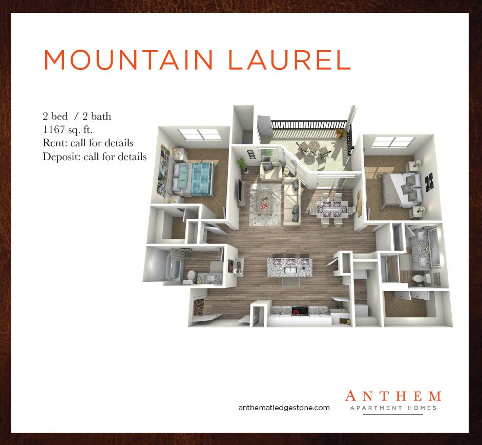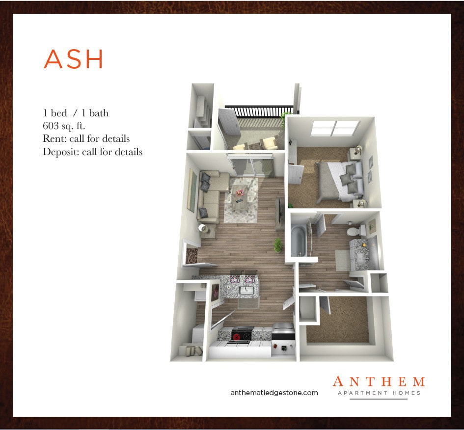 Anthem at Ledge Stone ofrece apartamentos de 1 a 3 Dormitorios desde $1,036 con 603–1,540 pies cuadrados. Aquí está el precio actual y la disponibilidad: