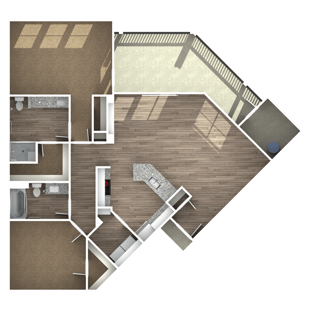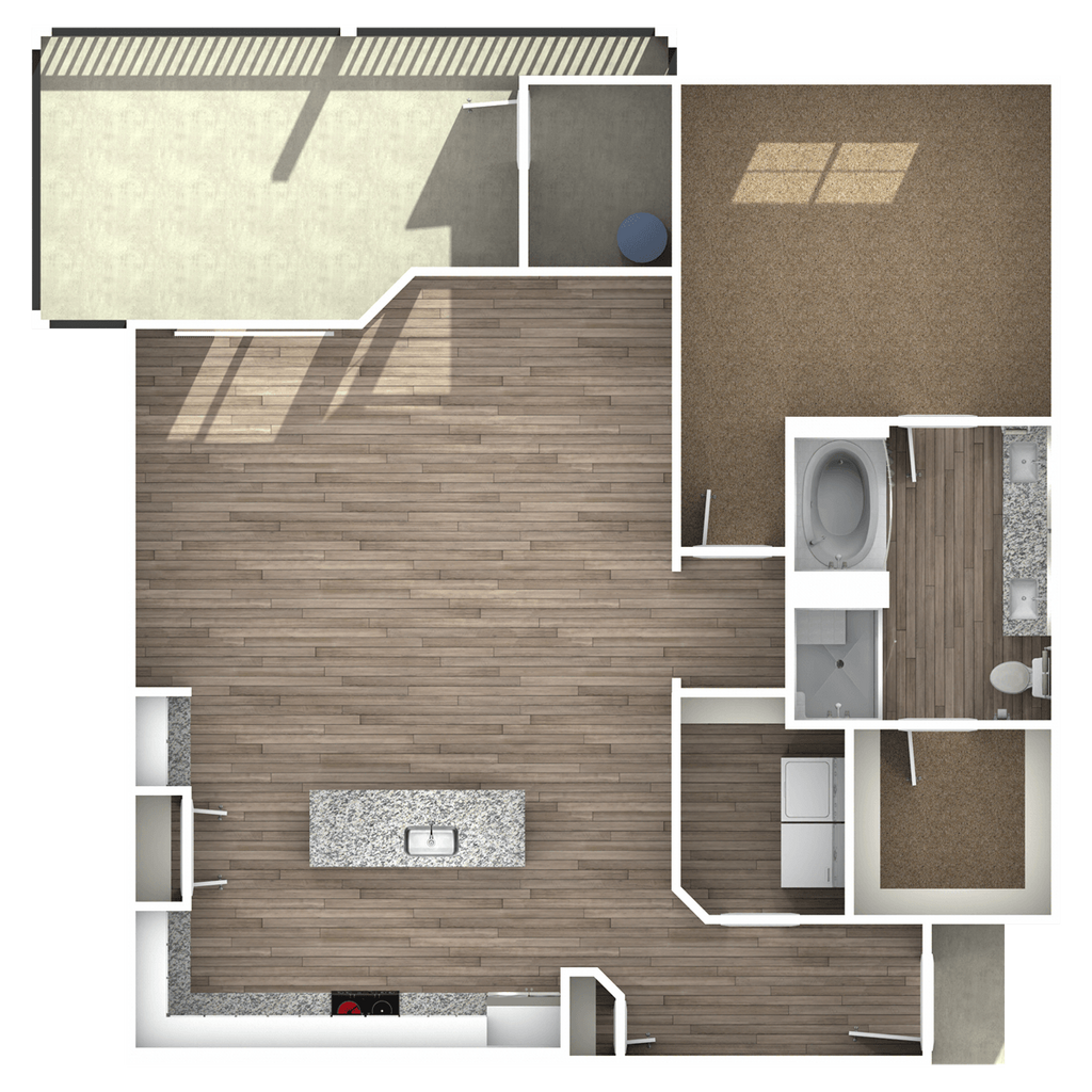 1 Dormitorio, 1 Baño, 1067 pies²Disponible AhoraEl más grandeEsta opción tiene las unidades más grandes para este modeloGalería del Modelo