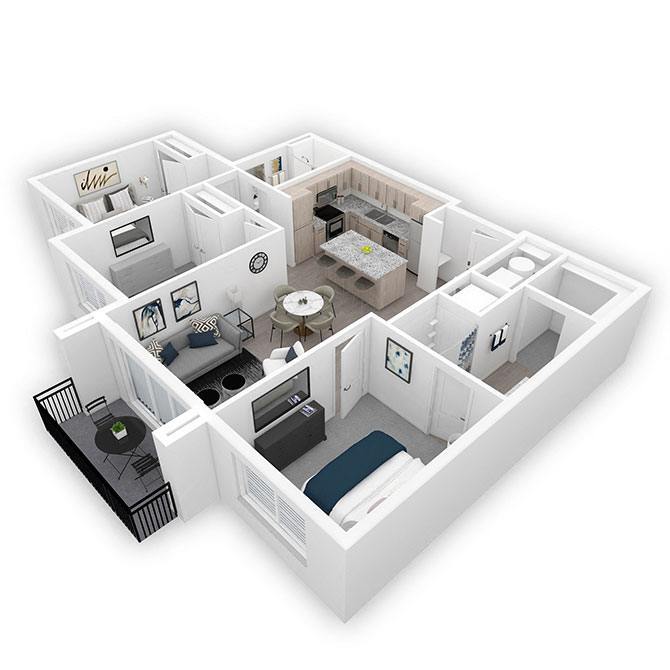 Modelo de apartamento: DickinsonLlame para Precios2 Dormitorios, 2 Baños, 990-1044 sq ftNo DisponiblePlanosFotos![]()