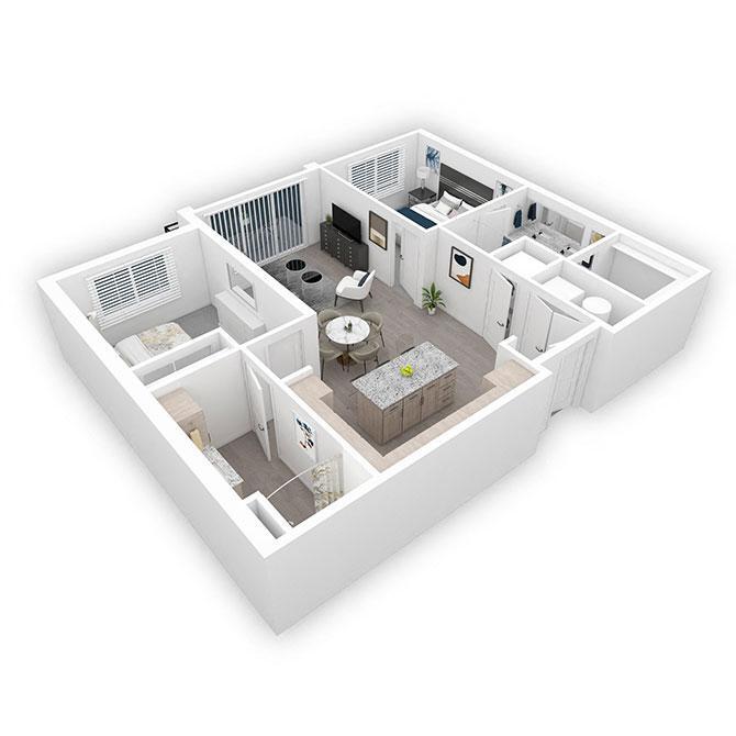 2 Dormitorios, 2 Baños, 990-1044 pies²Galería del Modelo