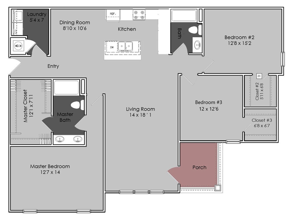 2 Dormitorios, 2 Baños, 1397 pies²Galería del Modelo