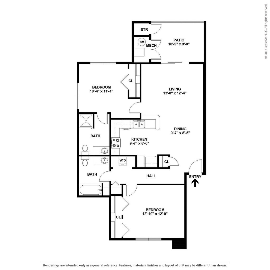 2 Dormitorios, 1 Baño, 870 pies²Galería del Modelo