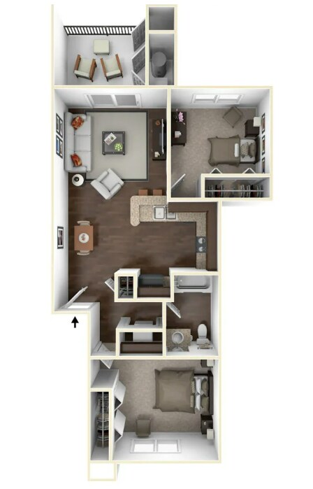 Modelo de apartamento: AnglerDesde $1,3502 Dormitorios, 1 Baño, 870 sq ftNo Disponible![]()