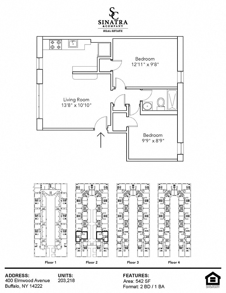Este edificio de tamaño moderado en el área deseable de Elmwood Village en Buffalo ofrece a los residentes todos los beneficios de la vida del pueblo en un edificio tranquilo. Los residentes disfrutan de las comodidades del área que incluyen los mercados de productores locales, las tiendas de estilo boutique, fácil acceso al transporte público, y las opciones de restaurantes eclécticos, cibercafé y vida nocturna. Tiene un exterior de ladrillos, con patio central. Los apartamentos son acogedores con carácter original, administrados profesionalmente por un equipo de mantenimiento 24/7/365, con electrodomésticos y lavandería en el sótano disponible.