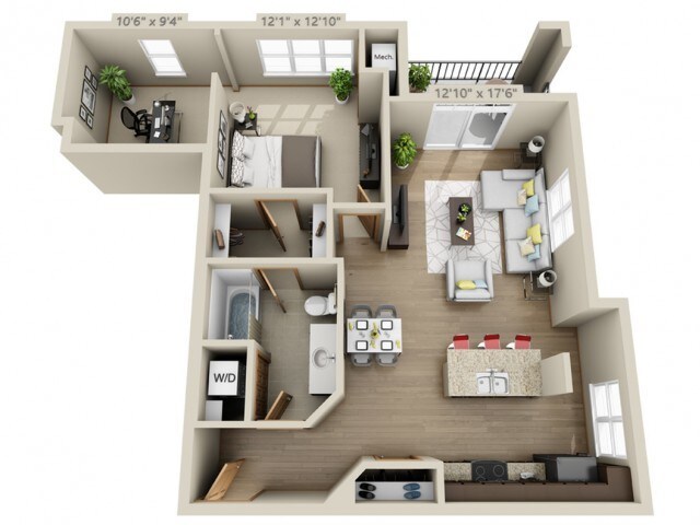 Modelo de apartamento: TulipDesde $1,5301 Dormitorio, 1 Baño, 805 sq ftDisponible Ahora![]()