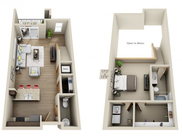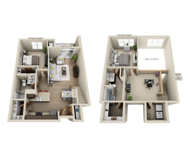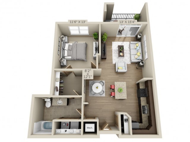 1 Dormitorio, 1 Baño, 805 pies²Disponible AhoraGalería del Modelo