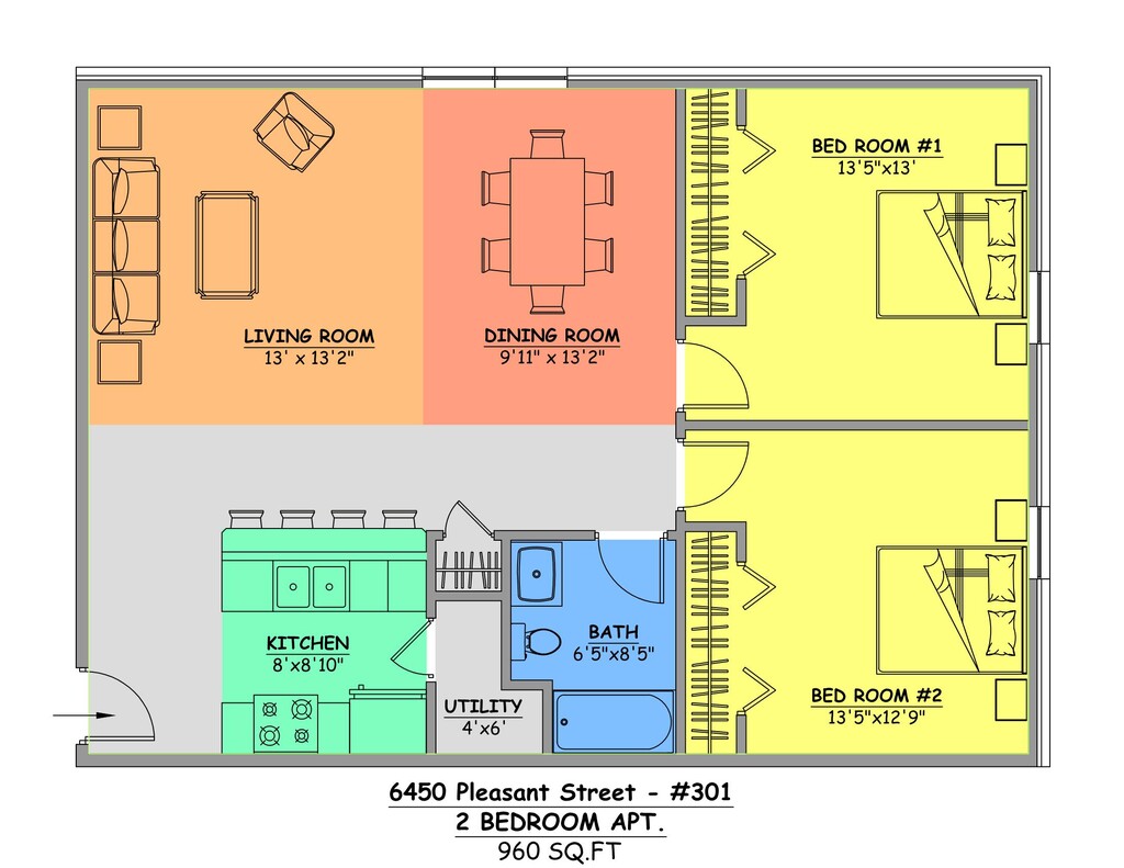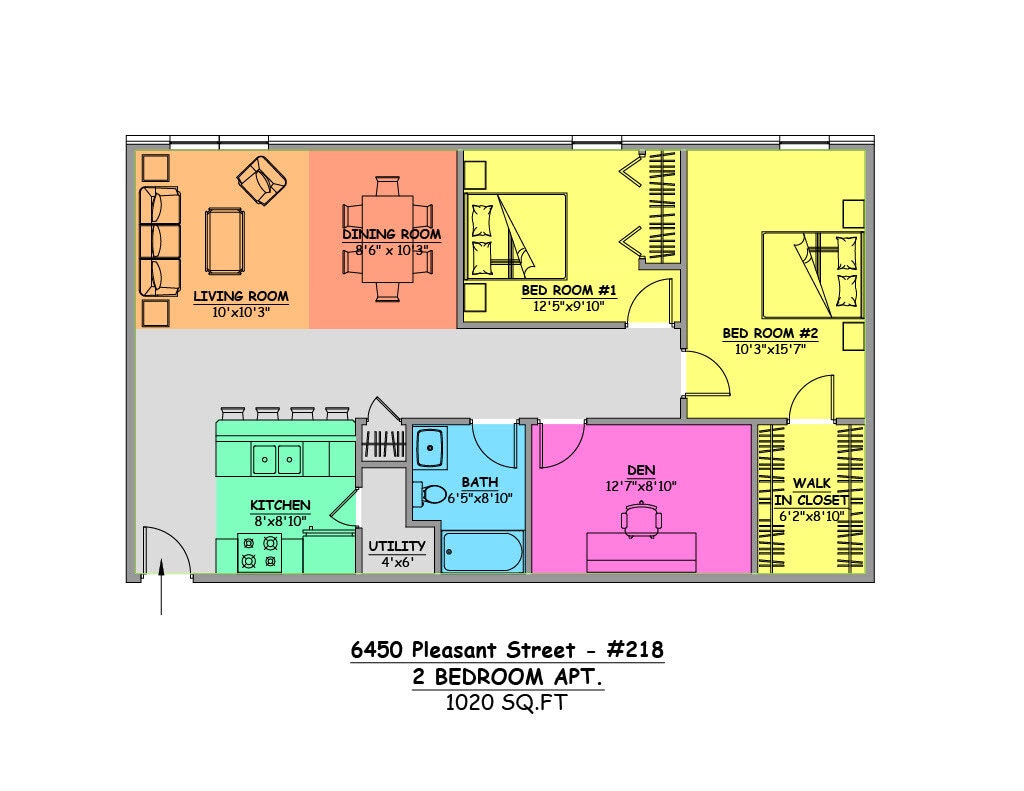 2 Dormitorios, 1 Baño, 960-1020 pies²Detalles de Diponibilidad