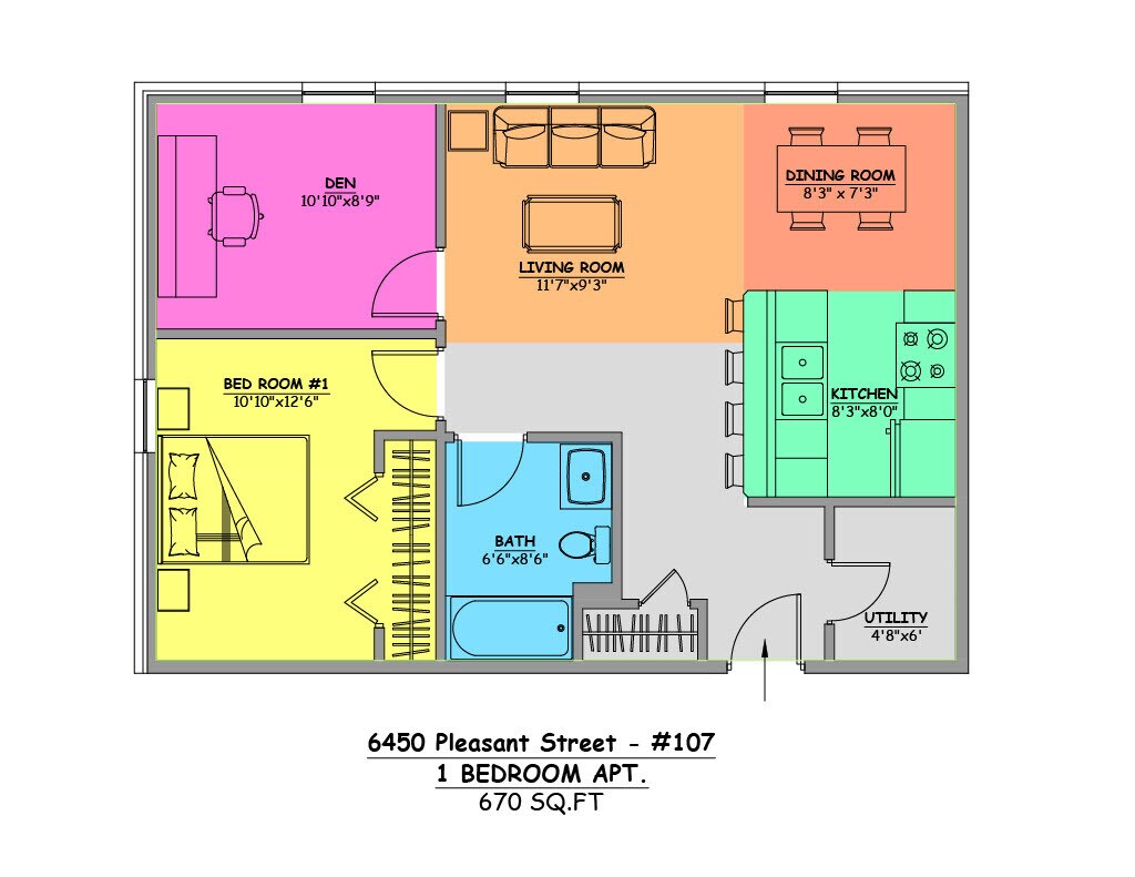 1 Dormitorio, 1 Baño, 670 pies²Detalles de Diponibilidad