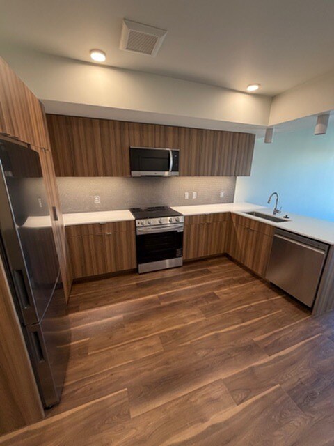December 15, 2025This building is advertised as “luxury,” but our experience was defined by basic safety and functionality failures. We documented broken glass, dead insects, and open industrial paint materials left in common areas for over ten days after being reported with photos. Inside our unit, issues were constant: a garbage disposal that broke after light use, exposed carpet tacks around the bedroom area, extremely poor shower water pressure, and a rusty blade found under the oven. The kitchen exhaust ...fan situation alone was deeply concering: it was left running continuously when we moved in, took weeks to get turned off, and still cannot be turned on because no switch was ever installed. Noise disturbances occurred at all hours, making it difficult to live or work, and package delivery issues were ongoing which have cost us hundreds of dollars and lots of lost time. This is not about amenities or aesthetics — it’s about unfinished construction, poor maintenance, and lack of basic standards. For the price being charged, this building is not worth the risk, and we would strongly caution anyone considering it.Leer MásReseña de Apartments.com